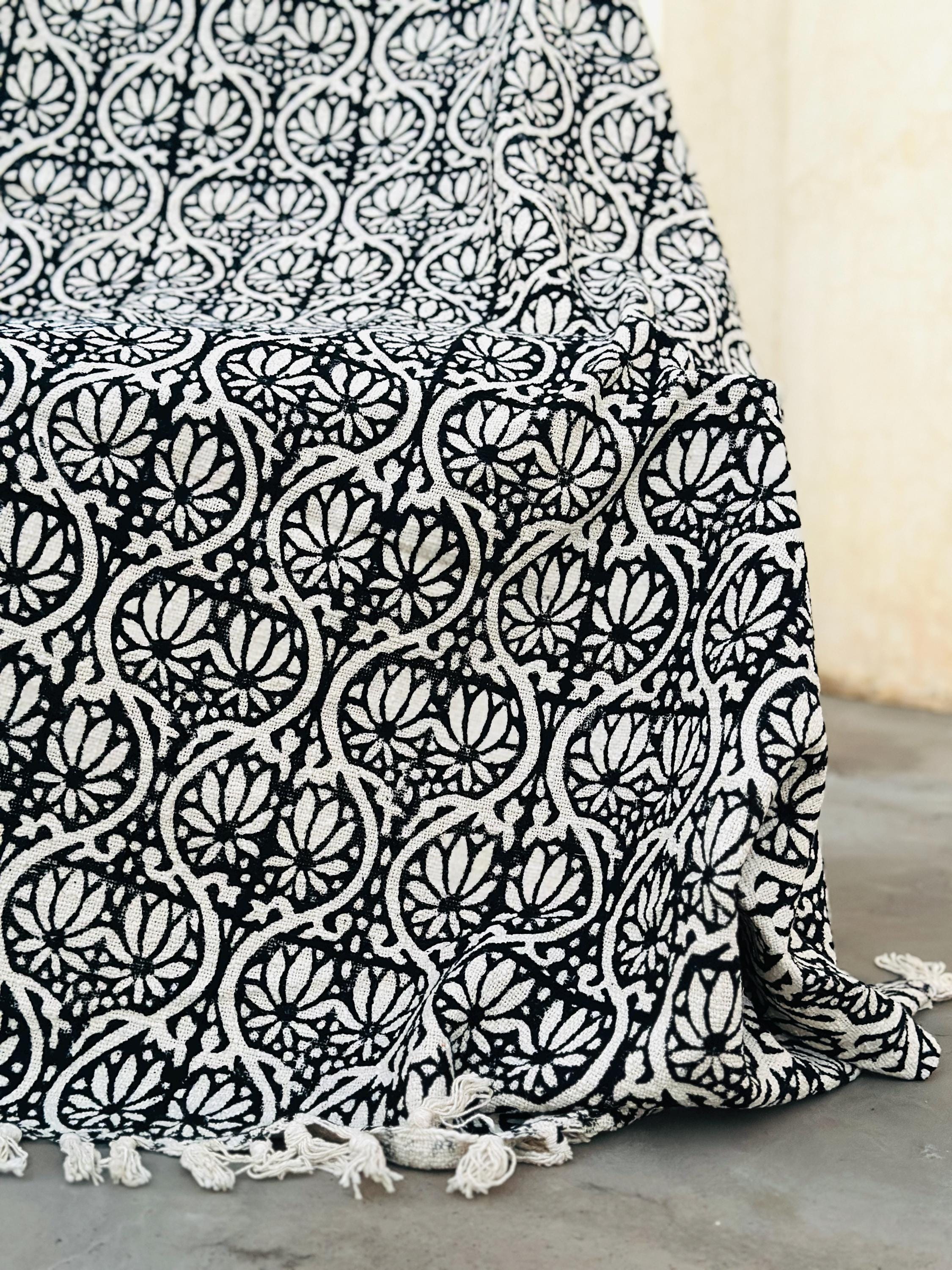 Elevate your home décor with our 100% Organic Cotton Throw Blanket. This thick, hand-block printed throw is designed to add a chic, vintage touch while providing ultimate comfort and warmth. Whether draped over your couch, wrapped around you on a chilly evening, or used as a stylish decor accent, this throw blanket is perfect for any space.