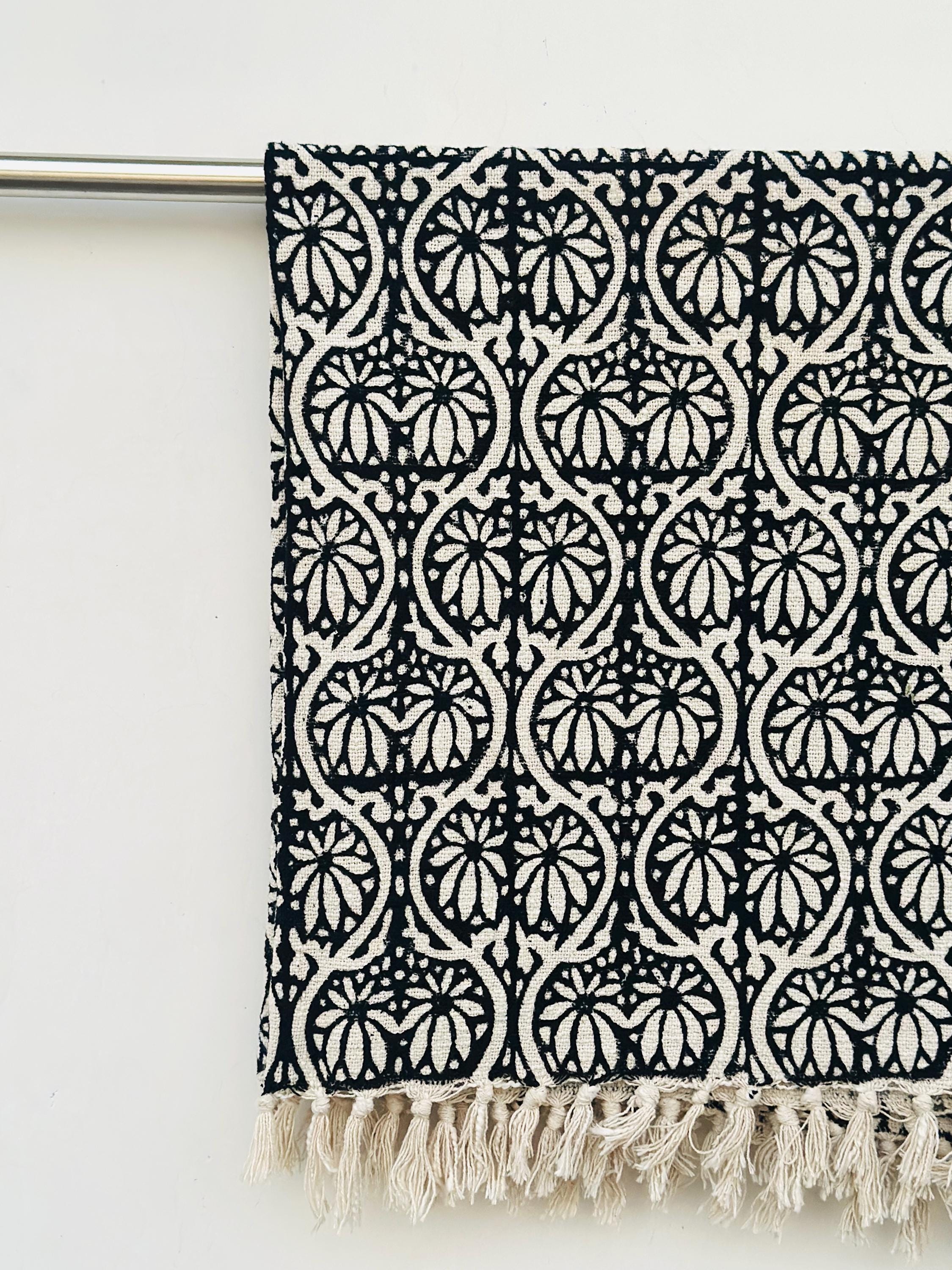 Handmade Block Print Cotton Throw Blanket with Tassels