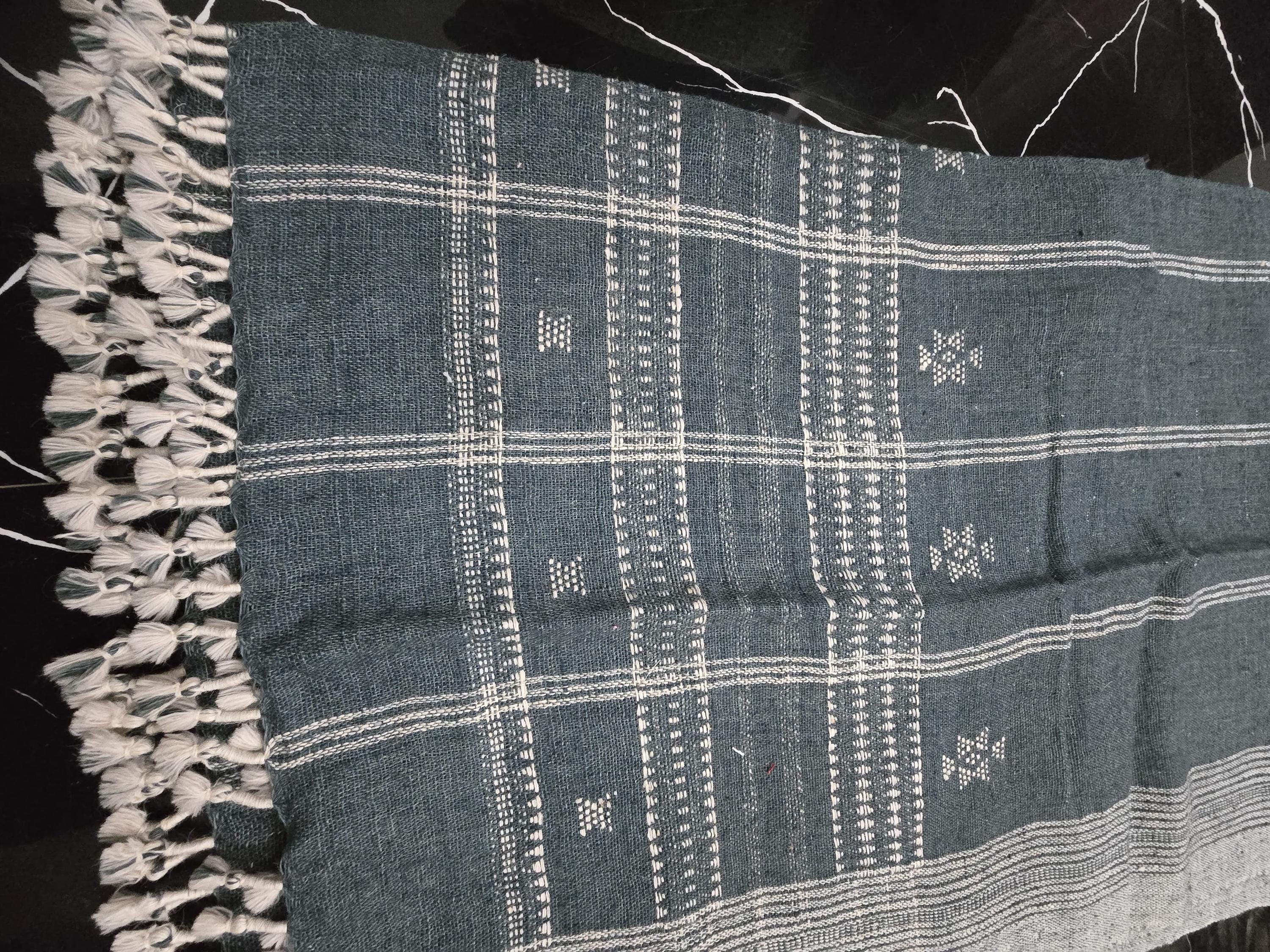 Bring warmth, texture, and heritage into your home with our handcrafted Bhujodi wool throw. Made from 100% naturally dyed wool, this beautiful piece features a teal green base with off-white stripes, geometric patterns, and charming pompoms at the edges. Each throw is a unique work of art, woven by hand in a 500-year-old tradition from Gujarat, India.