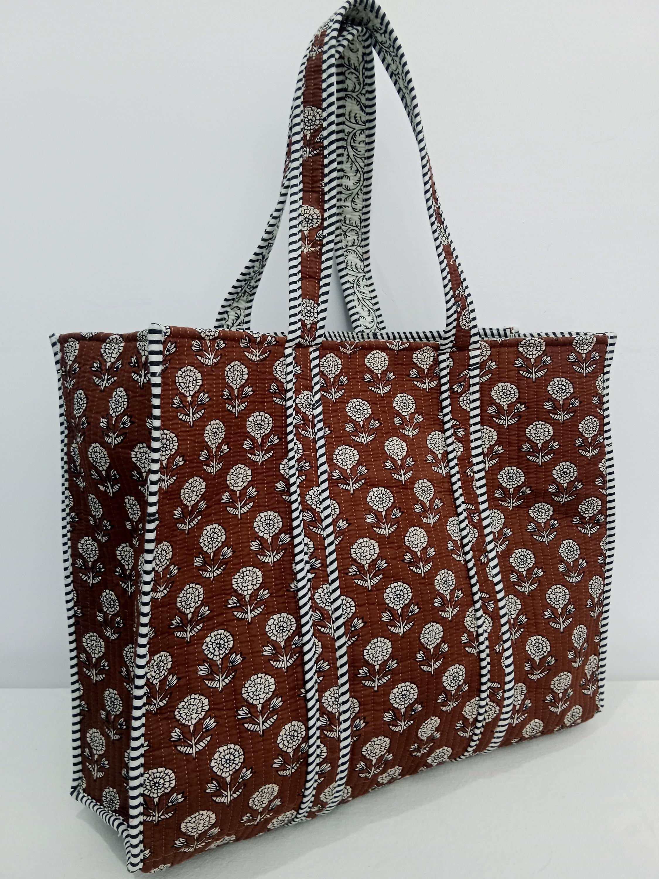 Brown Kantha Quilt Handmade Kantha Quilt - Indian Block Print Bedding Cozy Throw Blanket Ideal for Mother’s Day Gift or Bedroom Makeover