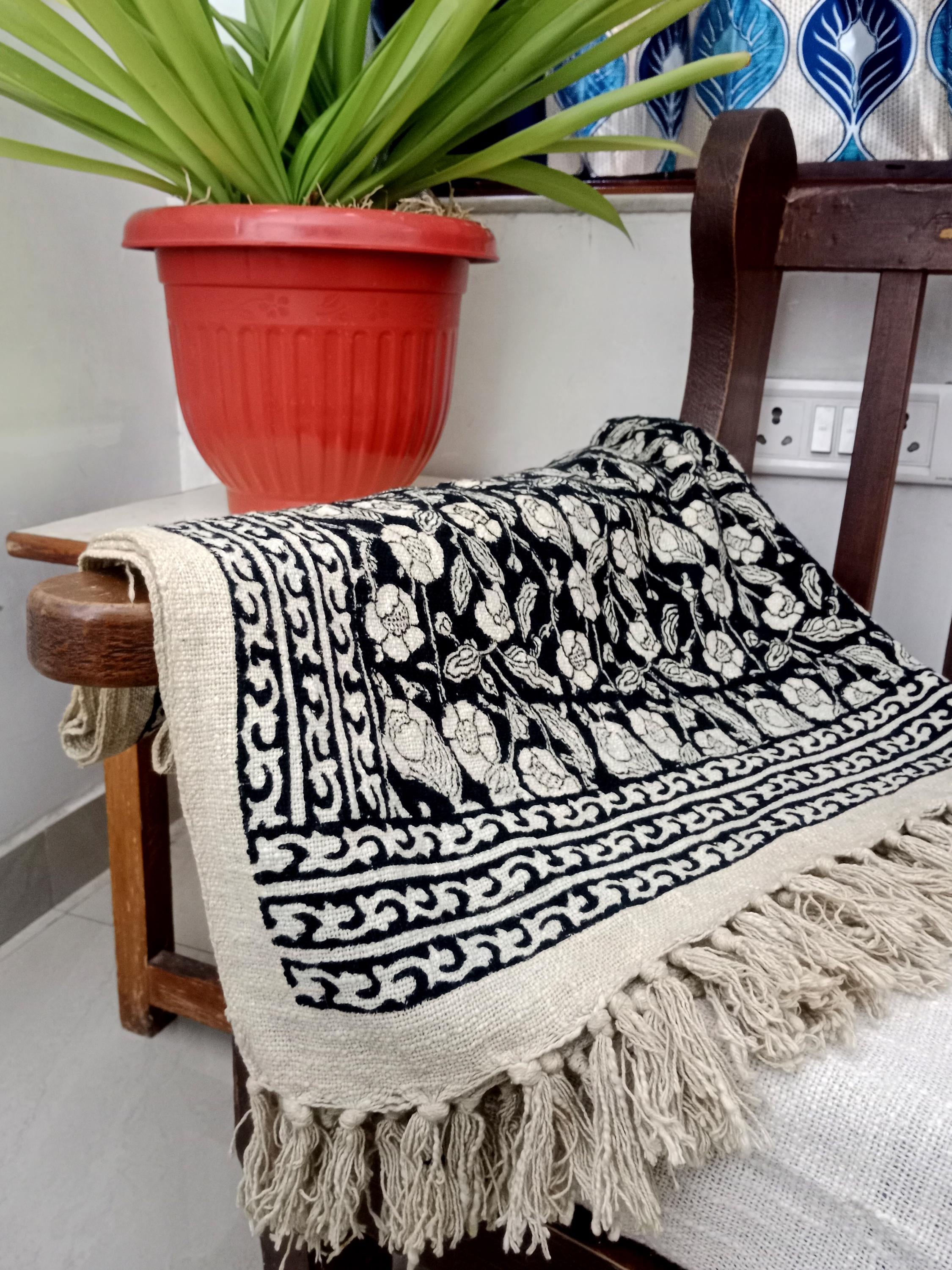 Elevate your home décor with our 100% Organic Cotton Throw Blanket. This thick, hand-block printed throw is designed to add a chic, vintage touch while providing ultimate comfort and warmth. Whether draped over your couch, wrapped around you on a chilly evening, or used as a stylish decor accent, this throw blanket is perfect for any space.