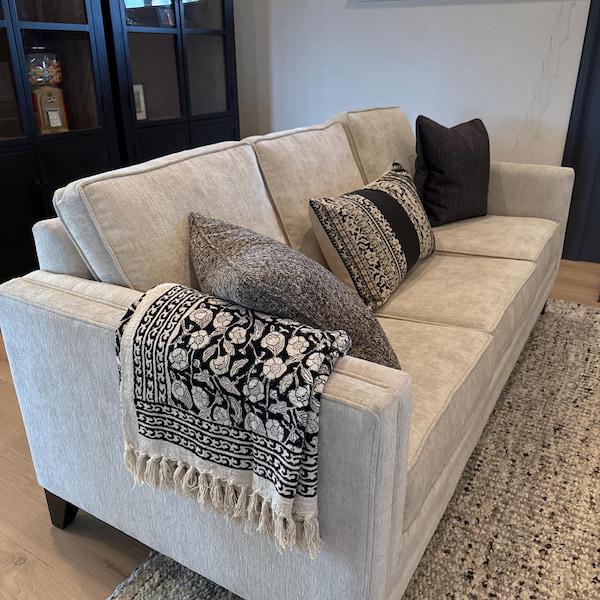 Premium Inspiration Handmade Throw Handblock Print Throw Cotton Throw Blanket Sofa Decor Room Decor Tassels Hand Loomed Soft Blankets