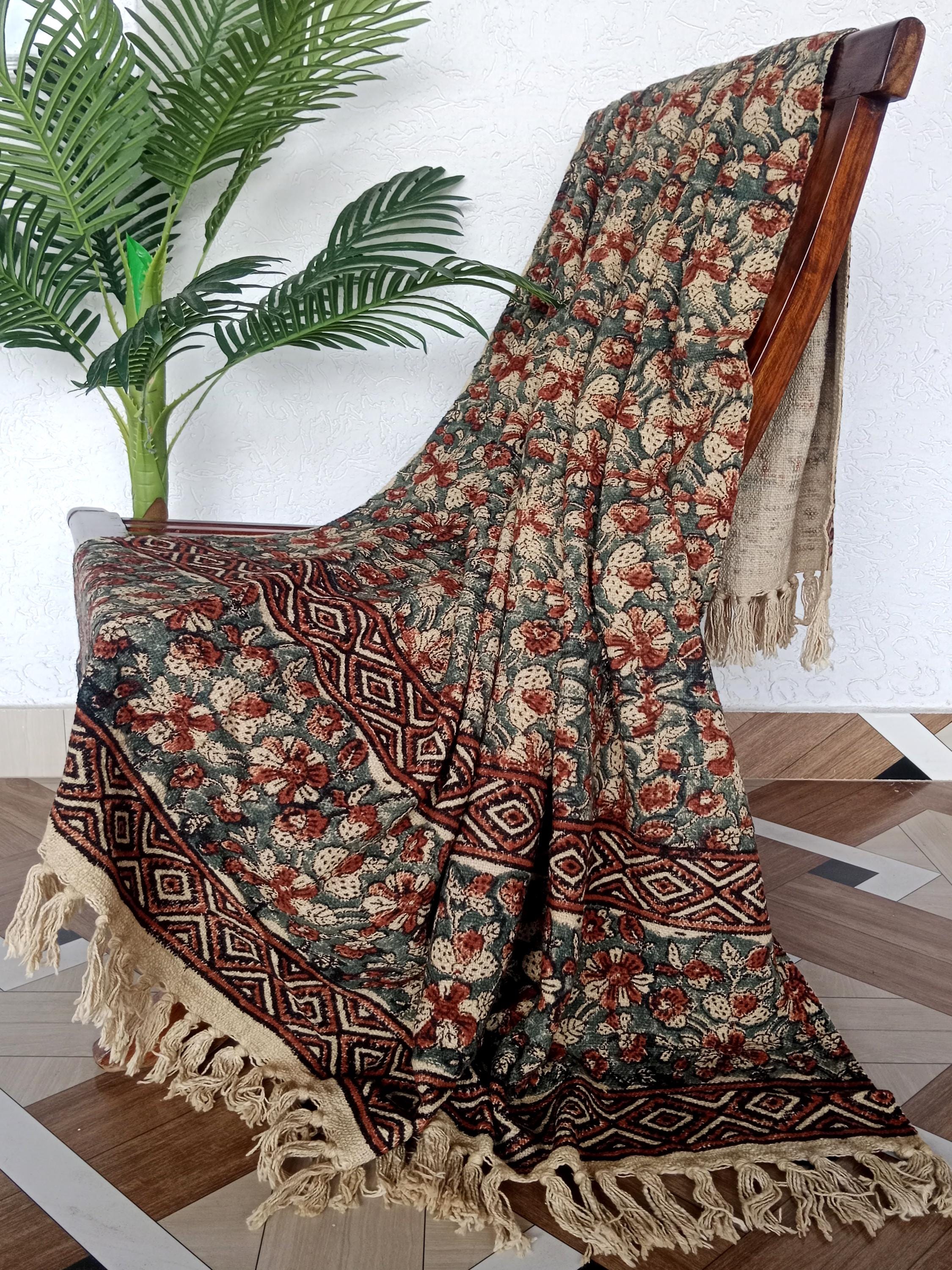 Elevate your home décor with our 100% Organic Cotton Throw Blanket. This thick, hand-block printed throw is designed to add a chic, vintage touch while providing ultimate comfort and warmth. Whether draped over your couch, wrapped around you on a chilly evening, or used as a stylish decor accent, this throw blanket is perfect for any space.