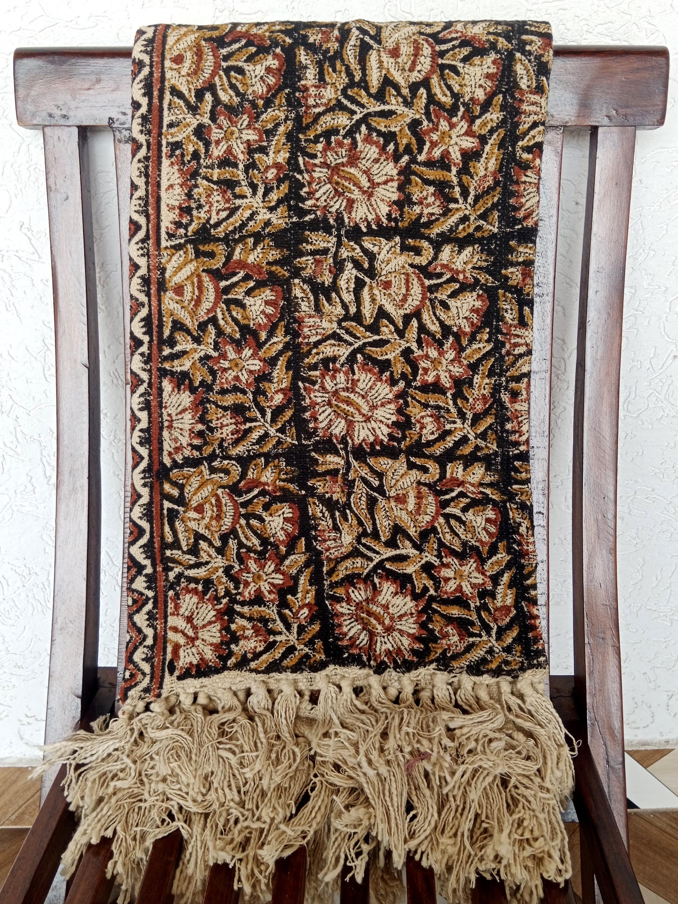Traditional Floral Cotton Throw Blanket Handcrafted Block Print Design Rustic Boho Bed or Sofa Throw with Tassel Fringe