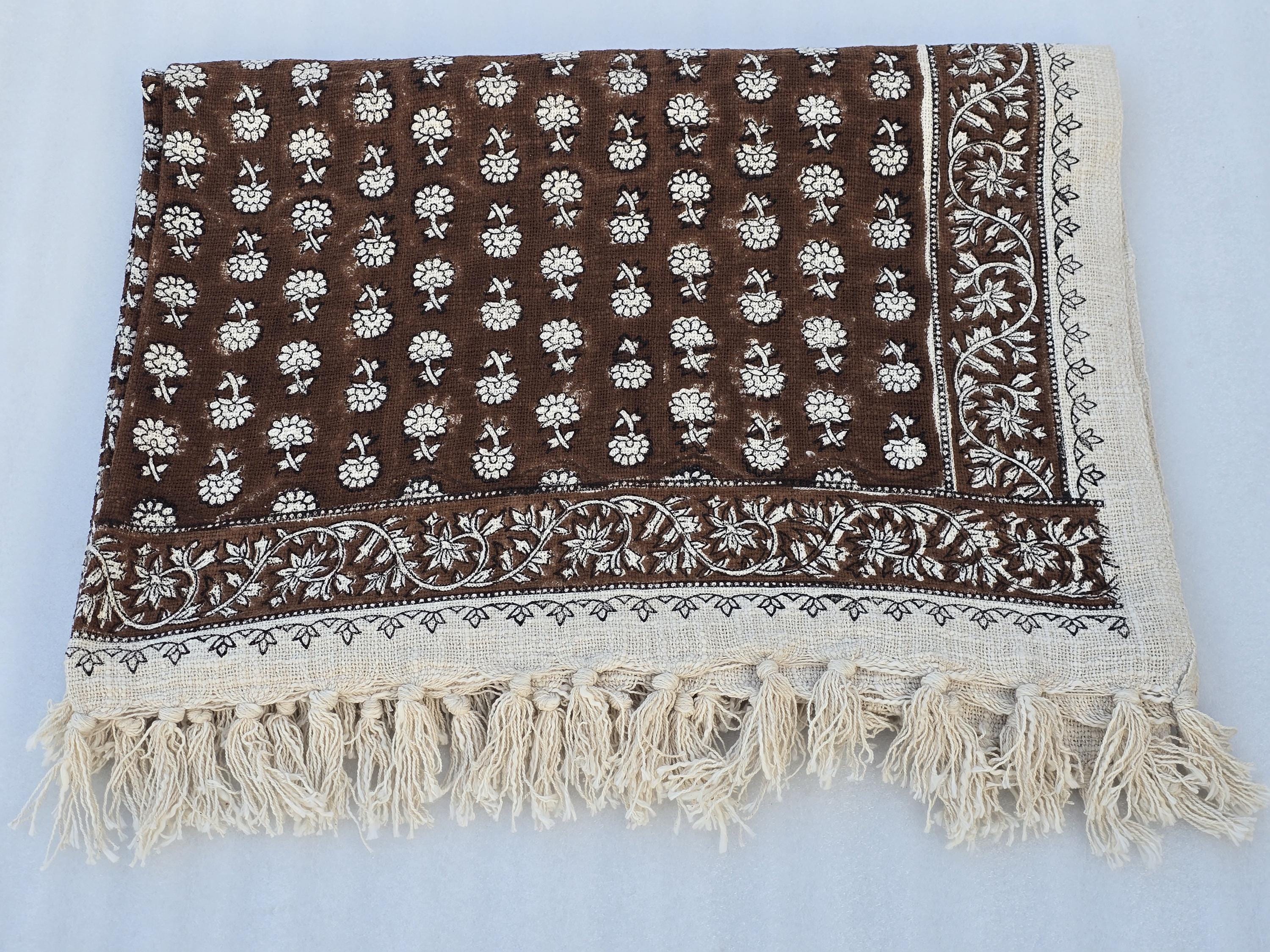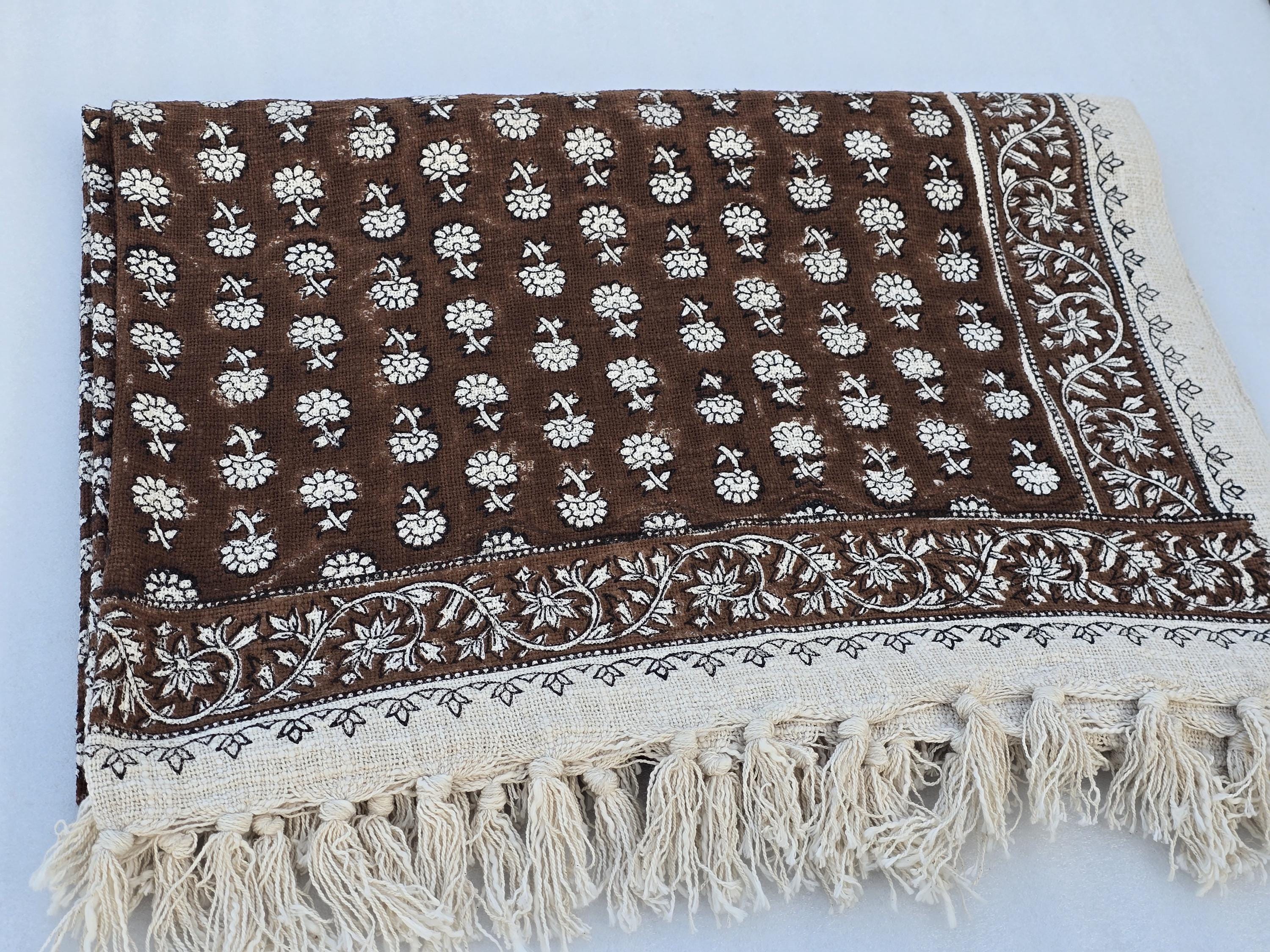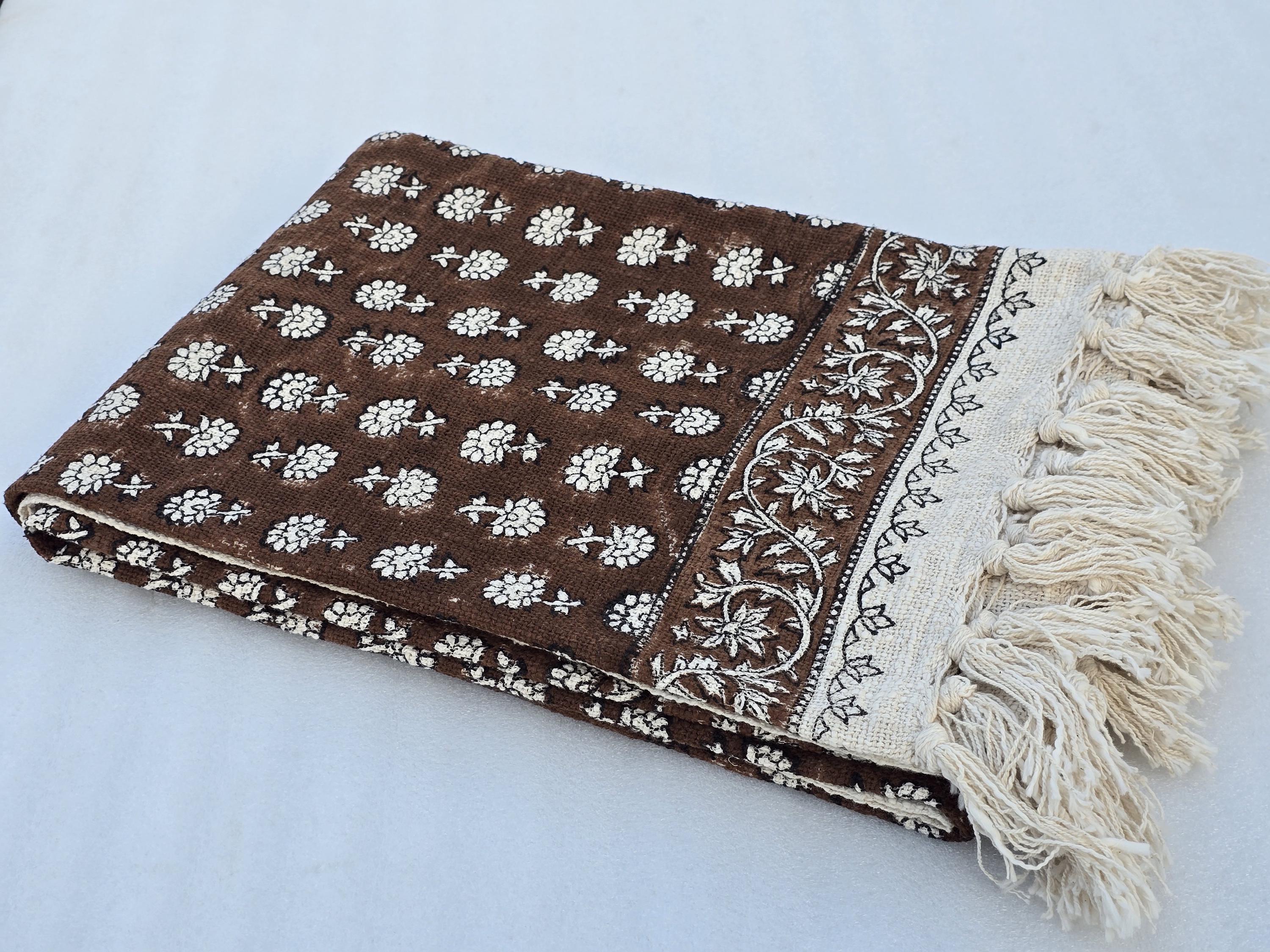 Elevate your home décor with our 100% Organic Cotton Throw Blanket. This thick, hand-block printed throw is designed to add a chic, vintage touch while providing ultimate comfort and warmth. Whether draped over your couch, wrapped around you on a chilly evening, or used as a stylish decor accent, this throw blanket is perfect for any space.
