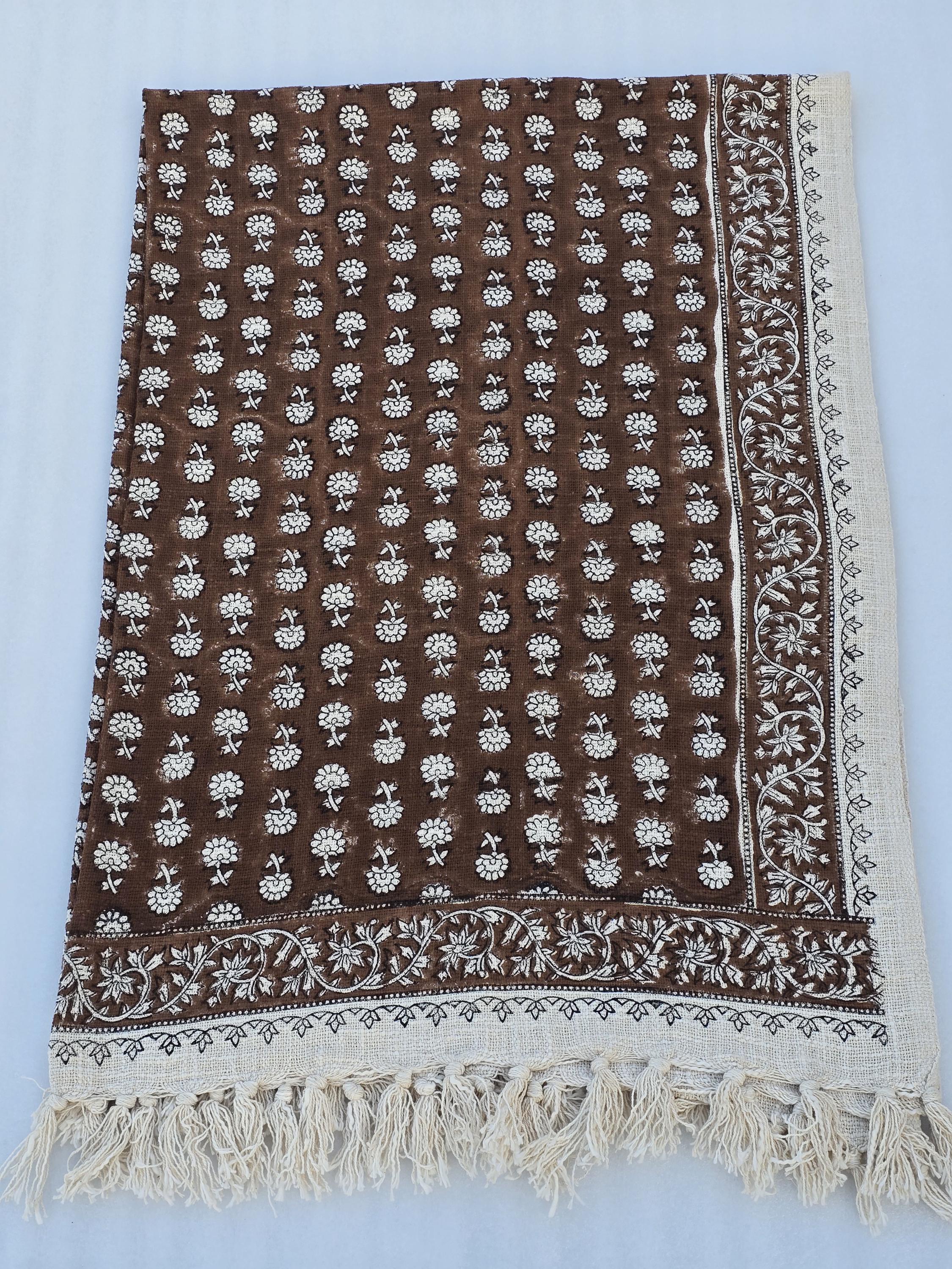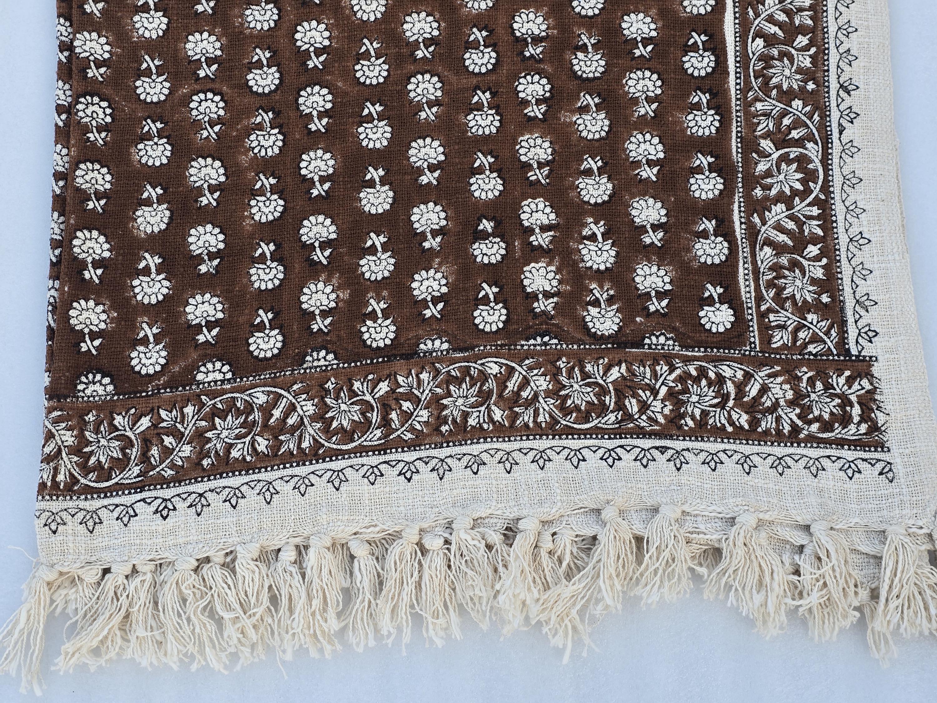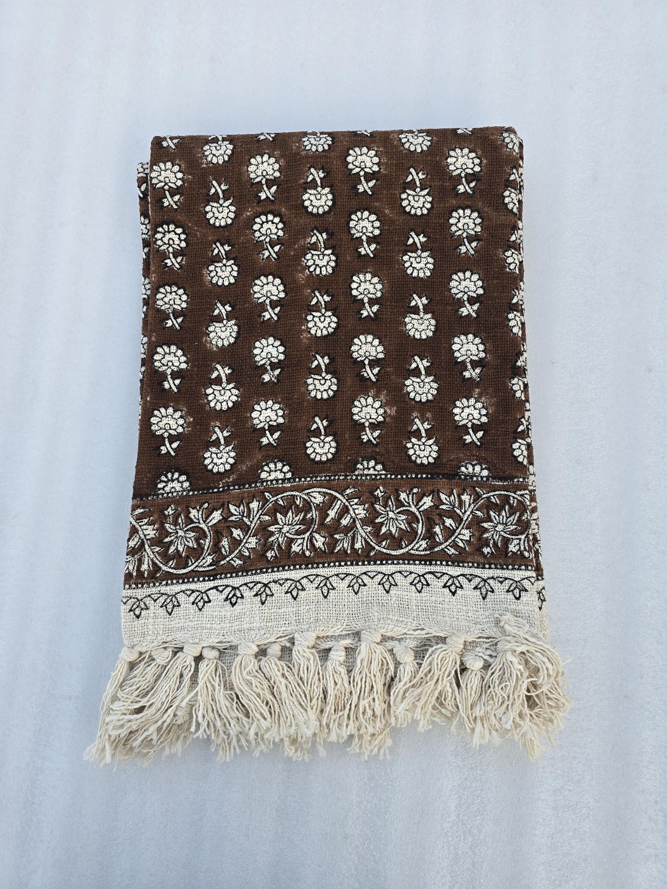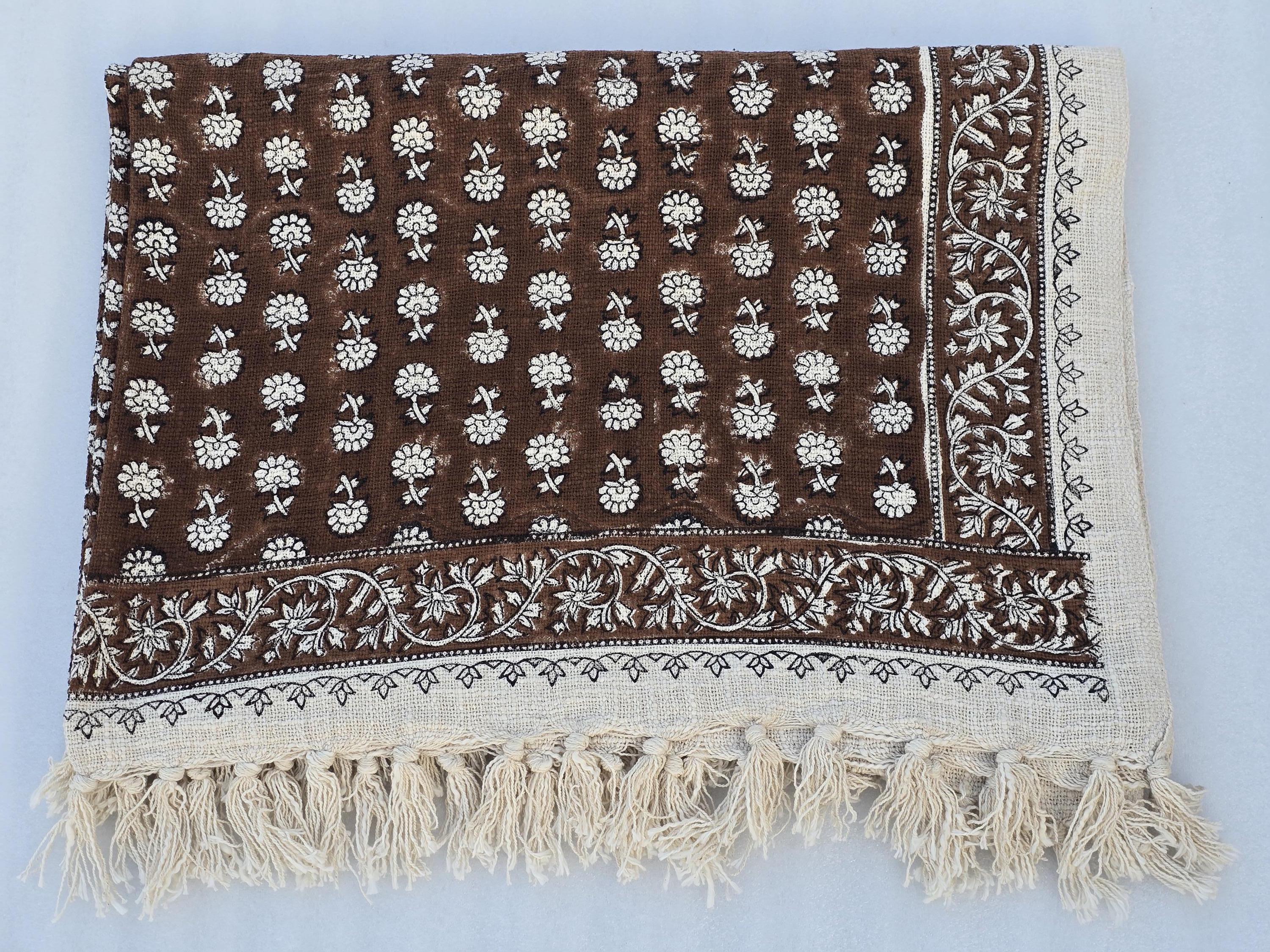 Elevate your home décor with our 100% Organic Cotton Throw Blanket. This thick, hand-block printed throw is designed to add a chic, vintage touch while providing ultimate comfort and warmth. Whether draped over your couch, wrapped around you on a chilly evening, or used as a stylish decor accent, this throw blanket is perfect for any space.