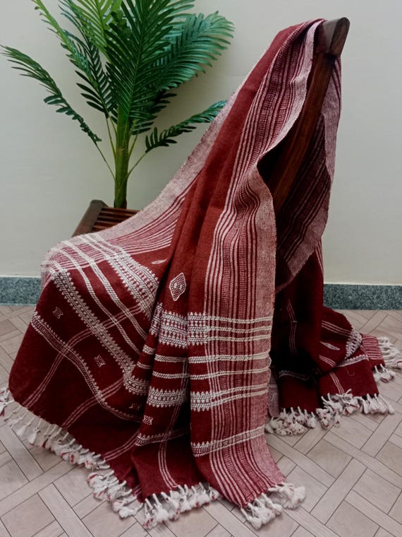 Handmade Indian Wool Throw Blanket | Handwoven Throw Blanket Bed Sofa Throw Handwoven Wool Throw Blanket Cottage Living Room Décor